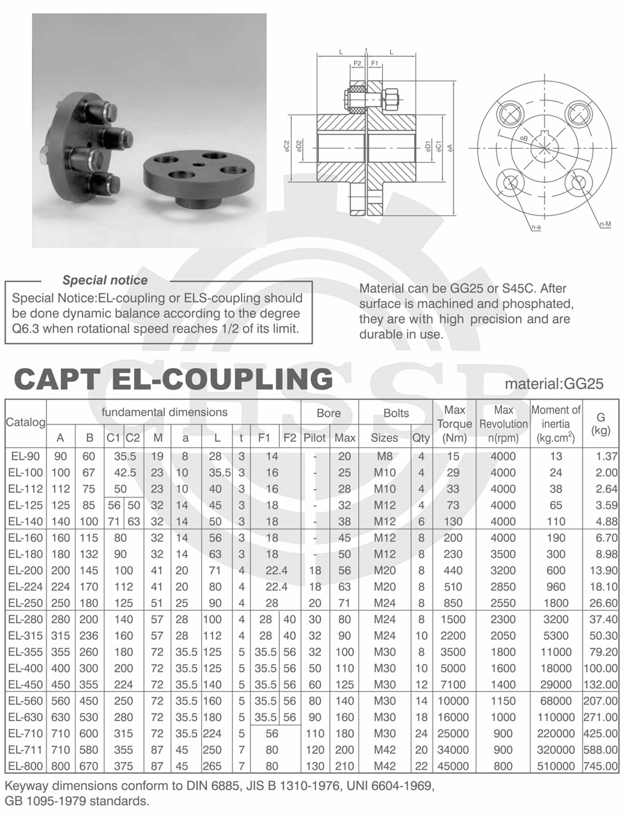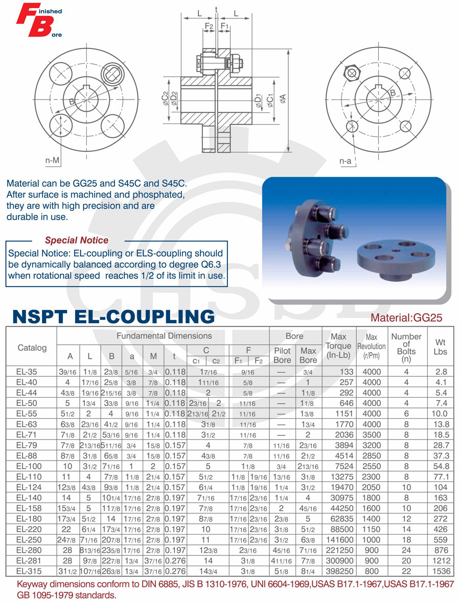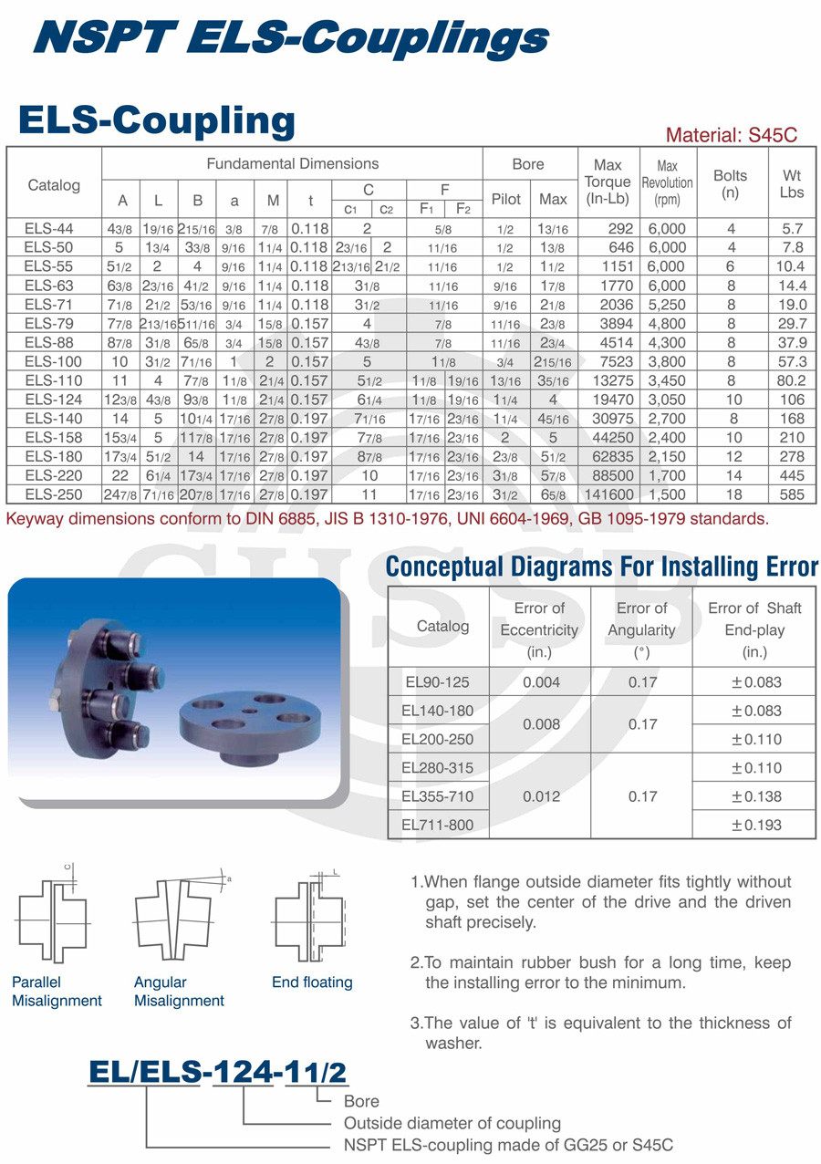 產(chǎn)品范圍: 美標(biāo):(EL/ELS) 歐標(biāo):(EL/ELS) 英制尺寸產(chǎn)品(適用于美標(biāo)市場(chǎng)) 公制尺寸產(chǎn)品(適用于歐標(biāo)市場(chǎng)) EL型聯(lián)軸器 ELS型聯(lián)軸器