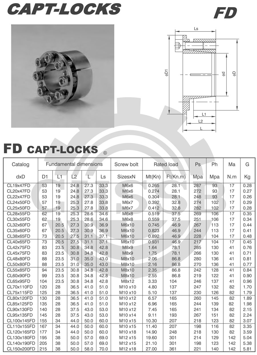 要求不高等特點。FD型脹套是FA2型脹套變形系列,內環的法蘭盤外圓為臺階狀,小臺部位可裝入聯結件的孔內,